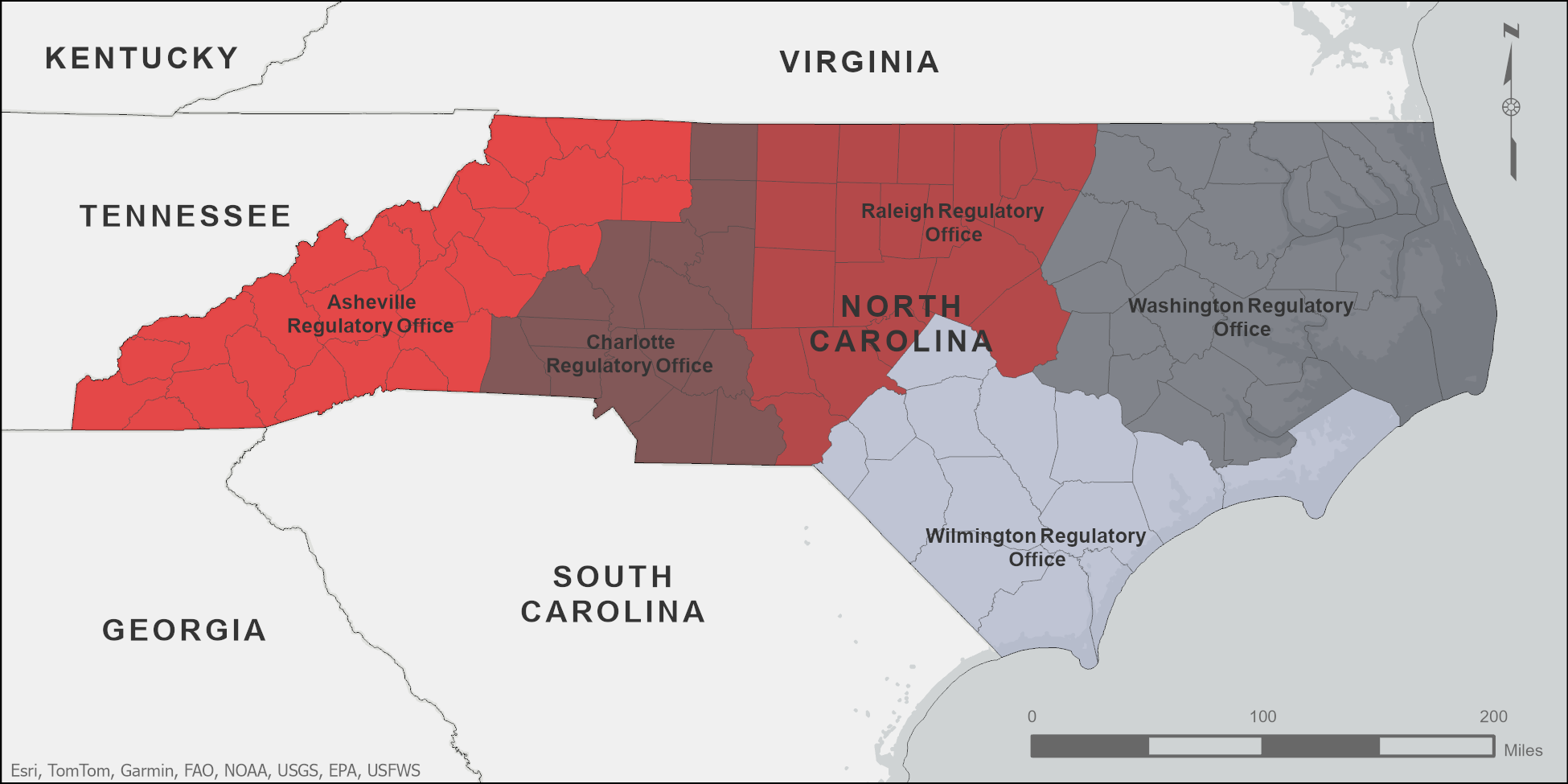 The Wilmington District regulatory program is comprised of five field offices serving the major regions of the state from the mountains to the sea, and a division office located at the main District office in Wilmington, NC.